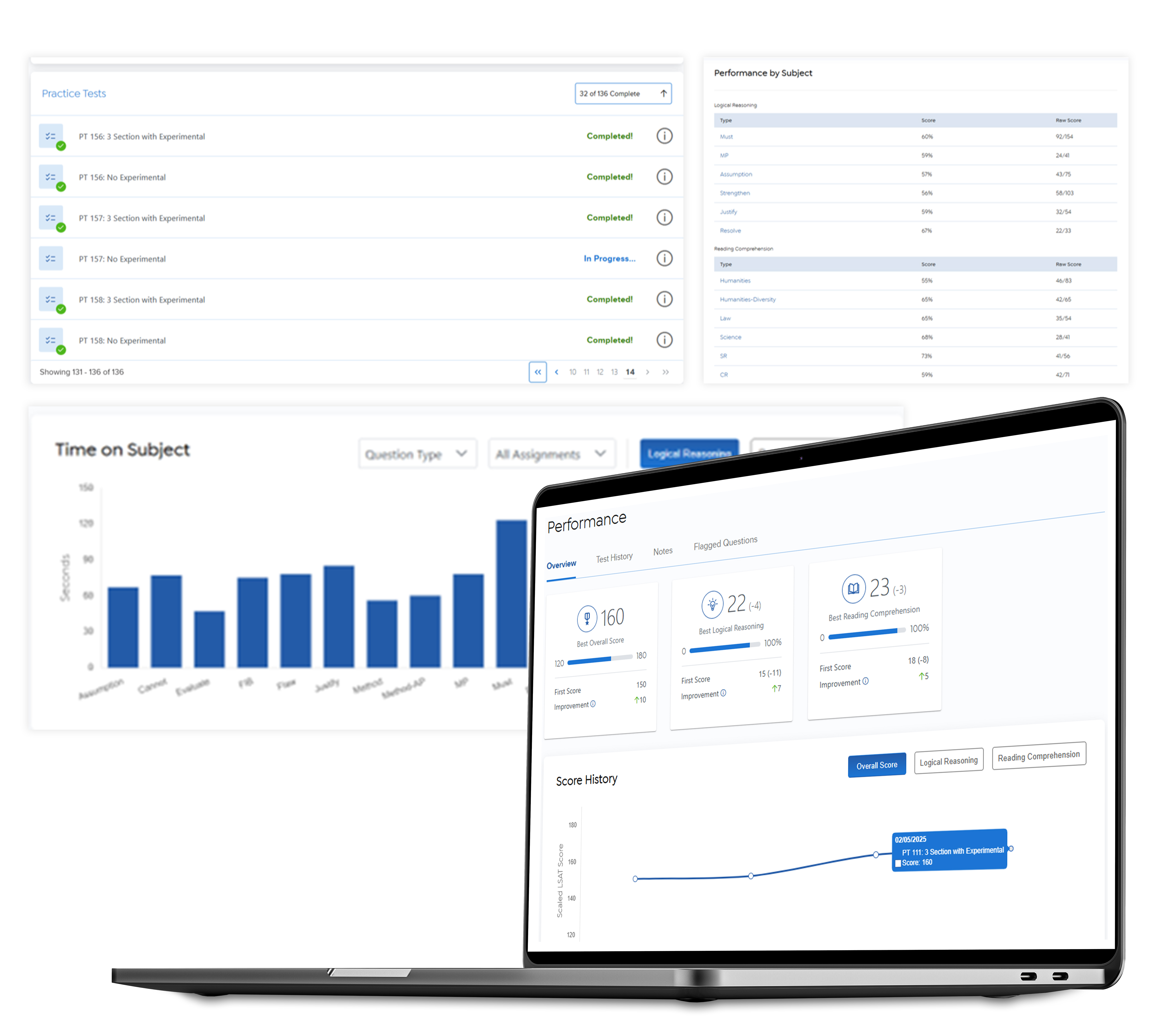 Simulate the test day experience and track your progress with powerful analytics. Practicing for the LSAT requires so much more than just taking raw practice tests. With our Testing & Analytics database and online testing interface, you'll have access to everything you need to make sure your practice time is spent as efficiently as possible, including: